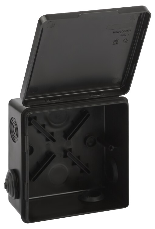 Распаячная коробка ЭРА KOR-100-100-50-8g-B открытой установки черная 100х100х50мм с гермовводами 8 вх. IP54