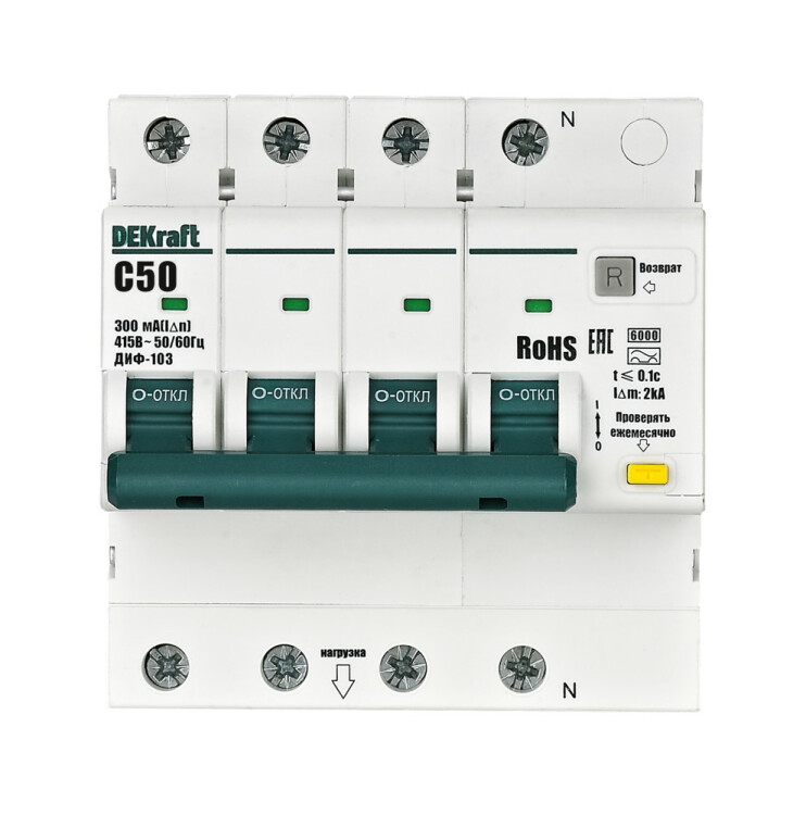 АВДТ 3P+N 50А 300мА AC х-ка C ДИФ-103 6кА