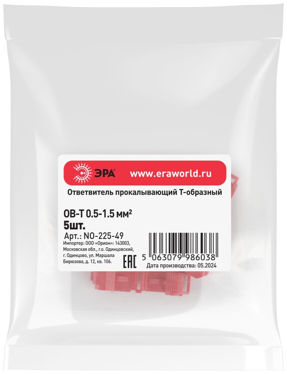 Ответвитель прокалывающий ЭРА NO-225-49 ОВ-Т 1 (0,5-1,5 мм2) Т-образный (упаковка 5 шт.)