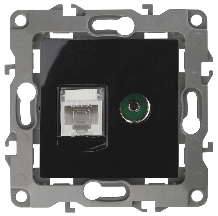 12-3110-06 ЭРА Розетка комбинированная RJ45+TV, IP20, Эра12, чёрный (10/100/3200)
