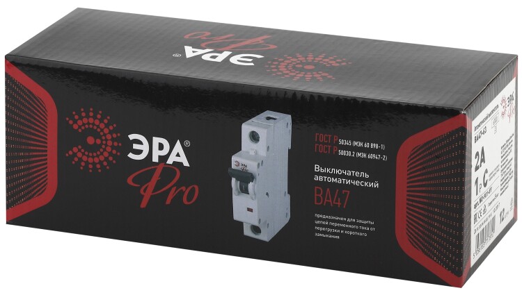 Автоматический выключатель ЭРА PRO NO-901-59 ВА47-63 1P 2А кривая C 6кА