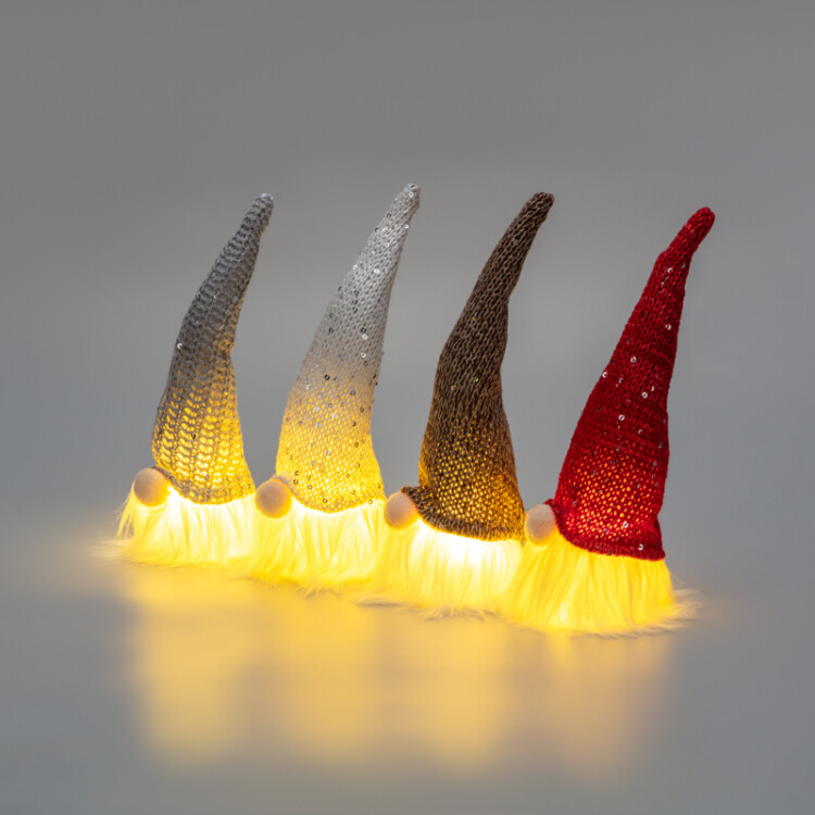 Набор из 4 Гномиков в новогодниx колпакаx 20 см, цвет свечения теплый белый, питание 3xLR1130 (в комплекте) NEON-NIGHT