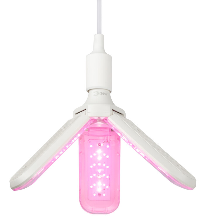 Фитолампа для растений светодиодная ЭРА FITO-24W-RB-E27-FOLD 3-х лепестковая красно-синего спектра 24 Вт Е27