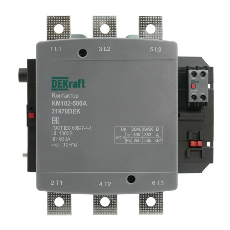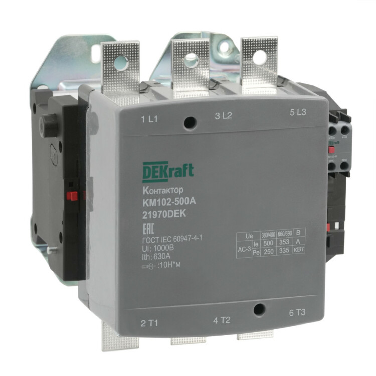 Контактор 500А 220В АС АС3 АС4 1НО+1НЗ КМ-102