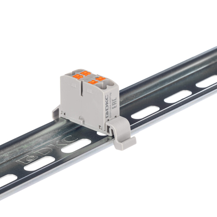 Блок распределительный с гориз. адаптером на рейку шириной 35мм, зажим push-in, 4 точки подключения 2,5 кв.мм, серый