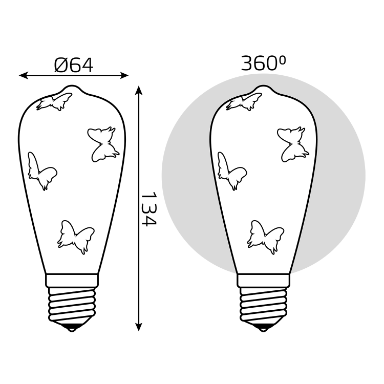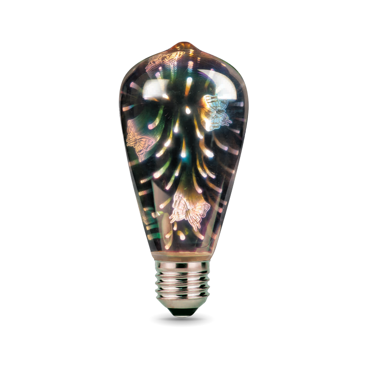 Лампа светодиодная 4 Вт 185-265 Е27 3D-Butterfly, декоративная колба ST64, RGB
