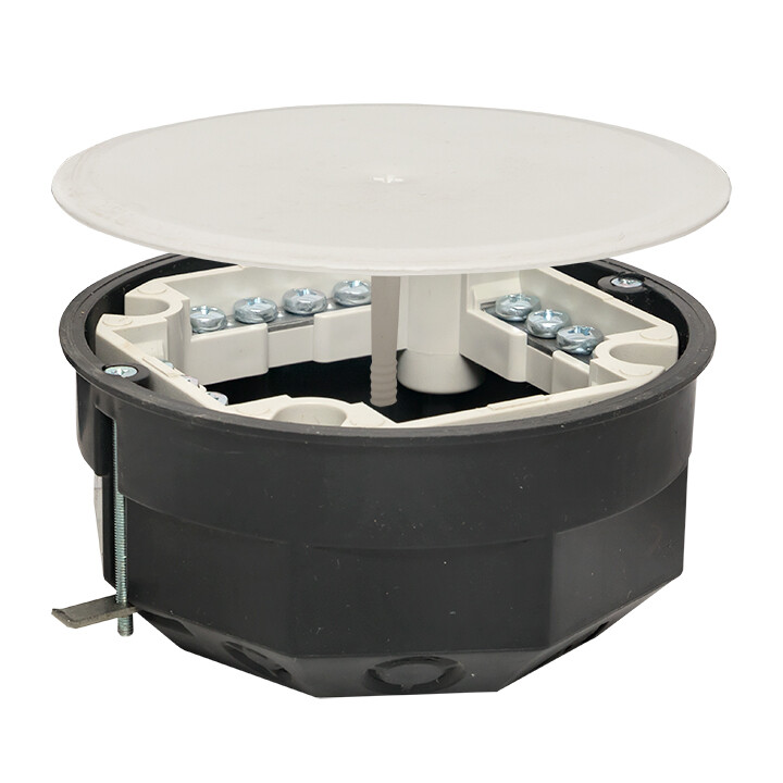 Коробка распаячная КМП-020-023 для полых стен с металлическими лапками, клеммником и крышкой (108х50