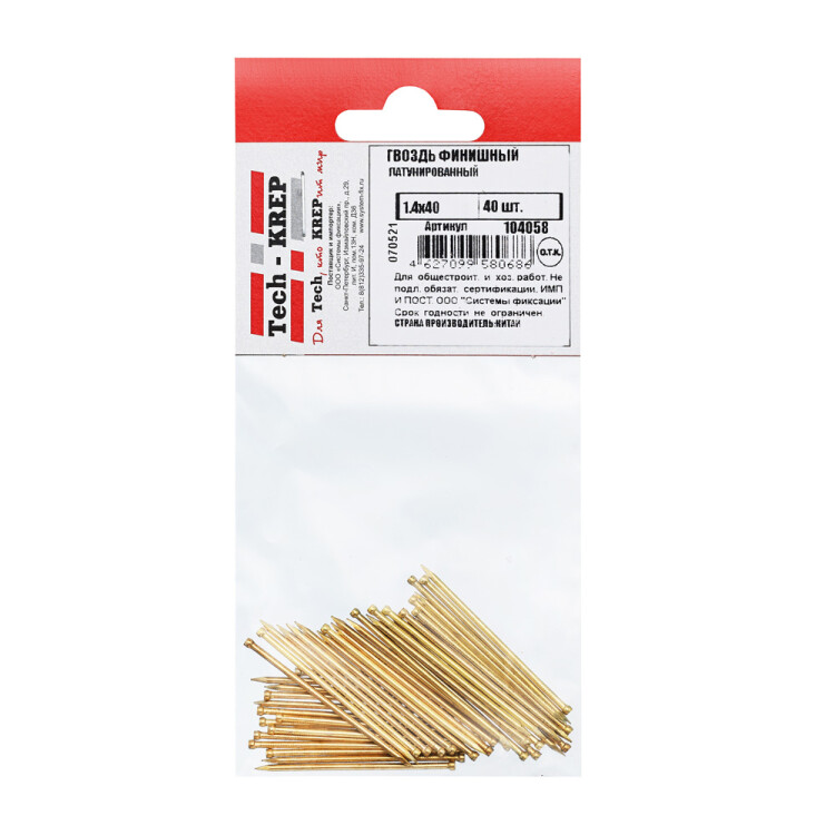 Гвоздь финишный латунированный 1,4х40 (40 шт) - пакет