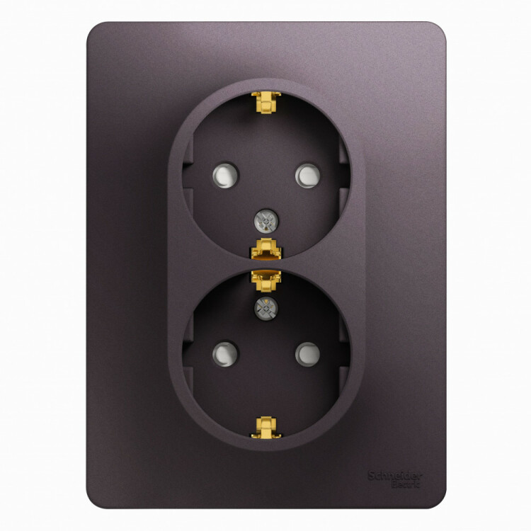 GLOSSA РОЗЕТКА двойная с заземлением со шторками,16А, 250В, в сборе,СИРЕН. ТУМАН