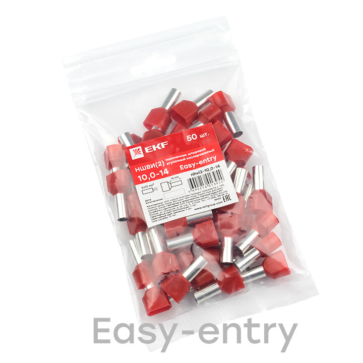 Наконечник штыревой втулочный изолированный НШвИ(2) 10,0-14 (50шт.) EKF PROxima
