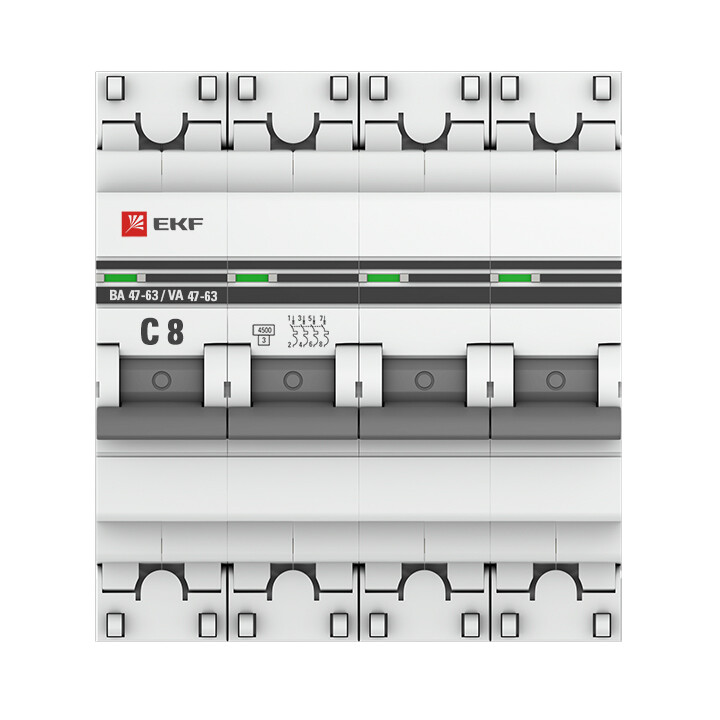 Автомат. выкл. 4-пол. 8А тип C 4,5kA серия ВА 47-63 EKF PROxima