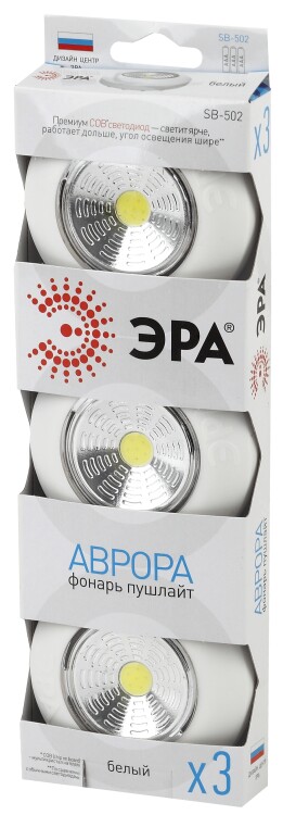 Светодиодный фонарь подсветка ЭРА Пушлайт SB-502 Аврора самоклеящийся 3шт белый COB