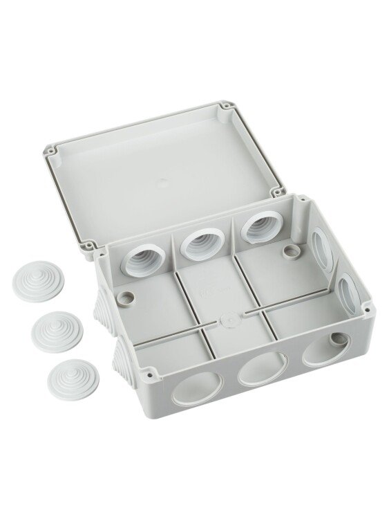 Коробка КМ41243 распаячная для о/п 190х140х70 мм IP44 (RAL7035, 10 гермовводов)