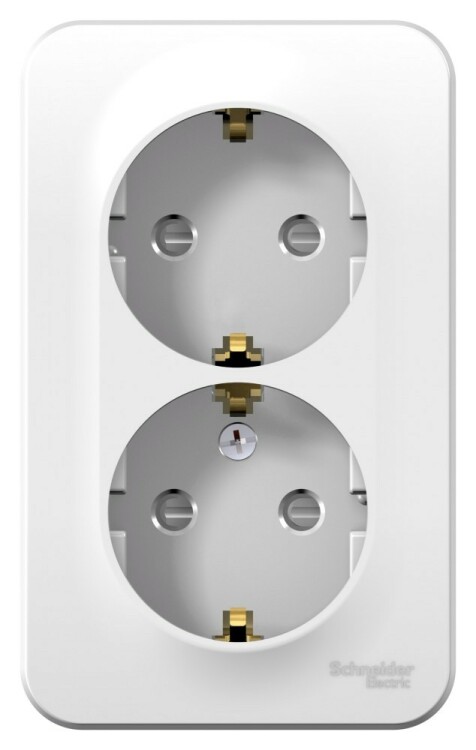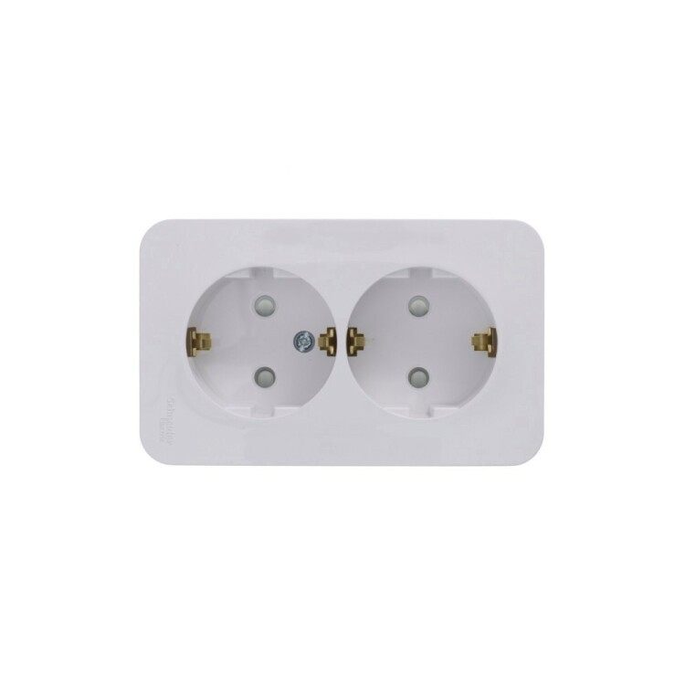 Розетка 2х2P+E со шторками 16А 250В накладной монтаж белый BLANCA