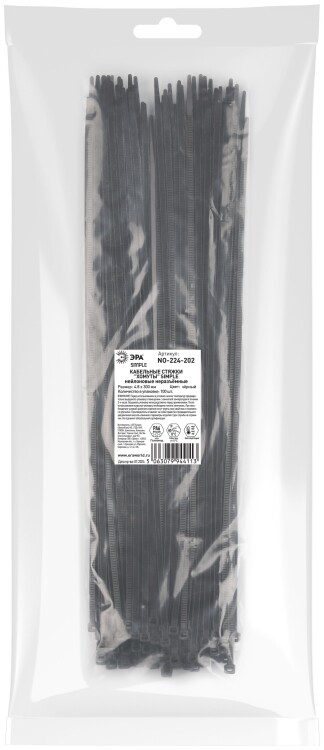 Кабельная стяжка ЭРА NO-224-202 (хомут) нейлоновая 4.8 х 300 мм чёрная (100 шт/уп) Simple