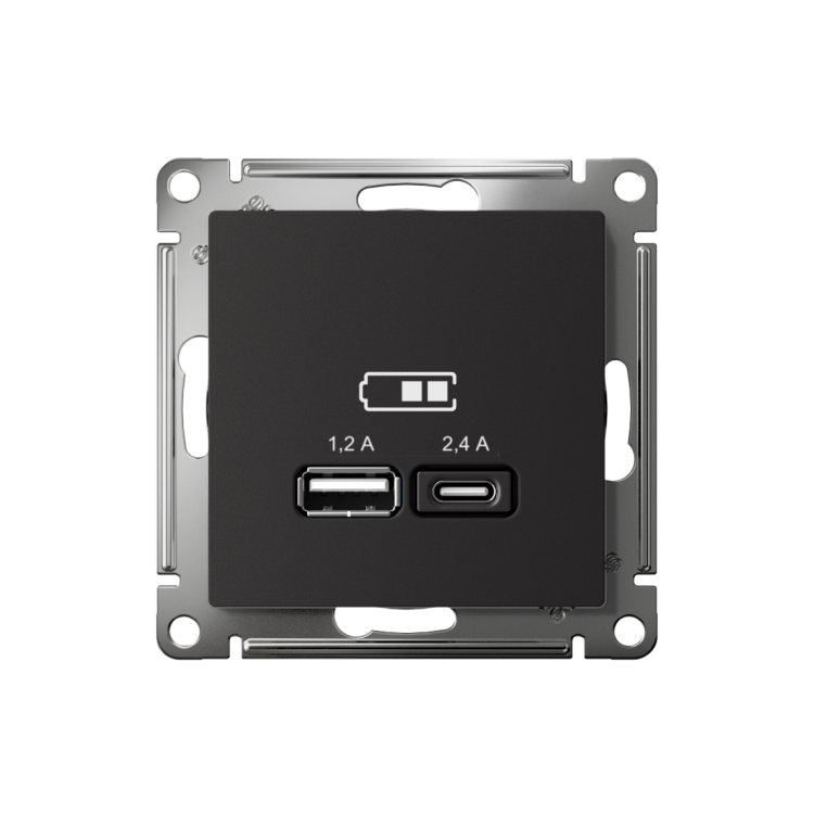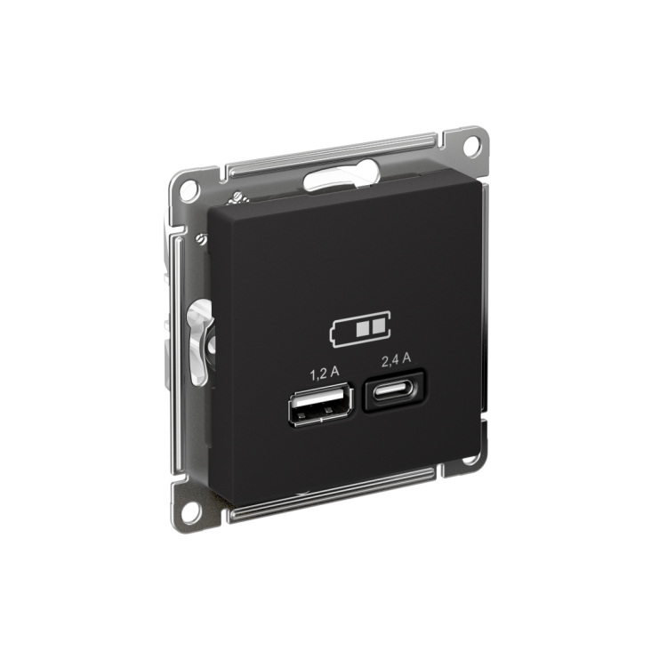 Розетка USB 2 порта A + C 5В/2,4А 2х5В/1,2А карбон AtlasDesign