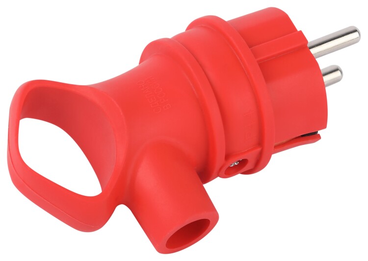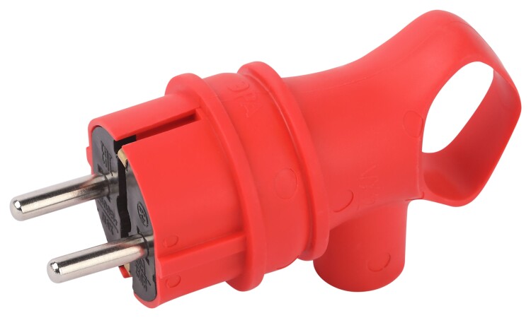 Вилка ЭРА VX12-R-IP44 каучуковая c заземлением 16А IP44 с кольцом угловая красная