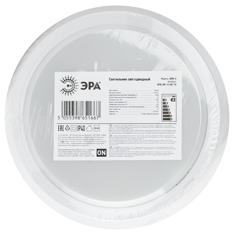 Светильник ЖКХ светодиодный ЭРА SPB-301-0-4K-10 IP40 10Вт 800Лм 4000К 155х155х33 круг накладной