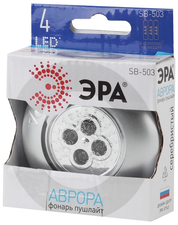 Светодиодный фонарь подсветка ЭРА Пушлайт SB-503 Аврора самоклеящийся серебристый