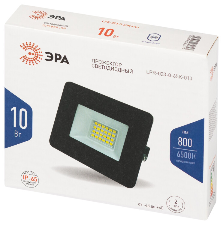 Прожектор LED 10Вт 800Лм 6500K 200-240В IP65 81х75х21,5мм чёрный LPR-023-0-65K-010