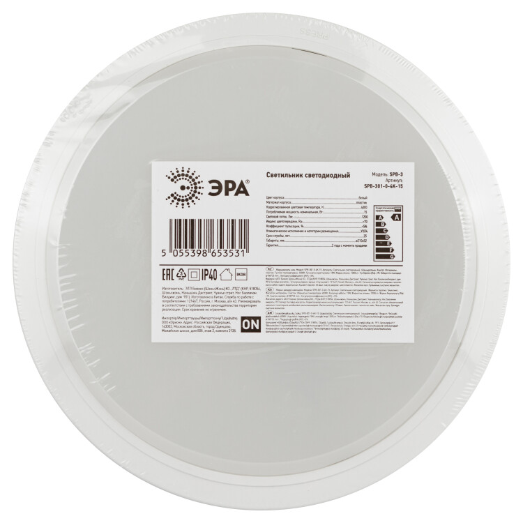 Светильник ЖКХ светодиодный ЭРА SPB-301-0-4K-15 IP40 15Вт 1200Лм 4000K 180х180х33 круг накладной