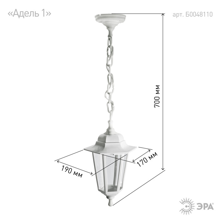 Садово-парковый светильник ЭРА НСУ 06-60-001 белый 6 гранный подвесной IP44 Е27 max60Вт