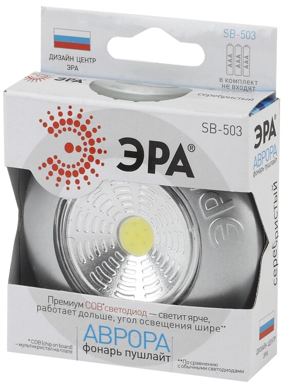 Светодиодный фонарь подсветка ЭРА Пушлайт SB-503 Аврора самоклеящийся серебристый COB