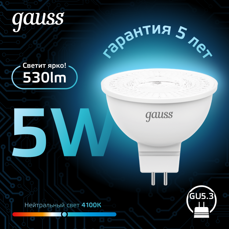 Лампа светодиодная 5 Вт 12В GU5.3 d=51mm, 4100K холодный