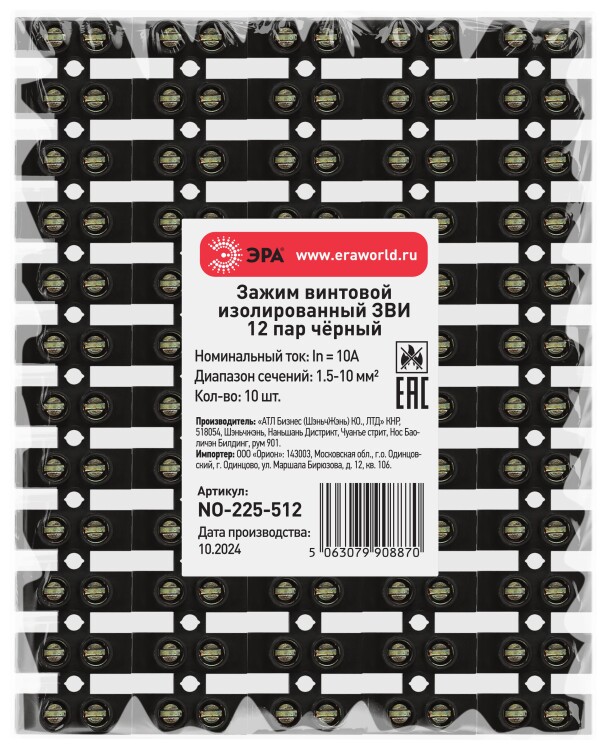 Зажим винтовой ЭРА NO-225-512 изолированный ЗВИ-нг 10А (1.5-10 мм2) 12 пар чёрный