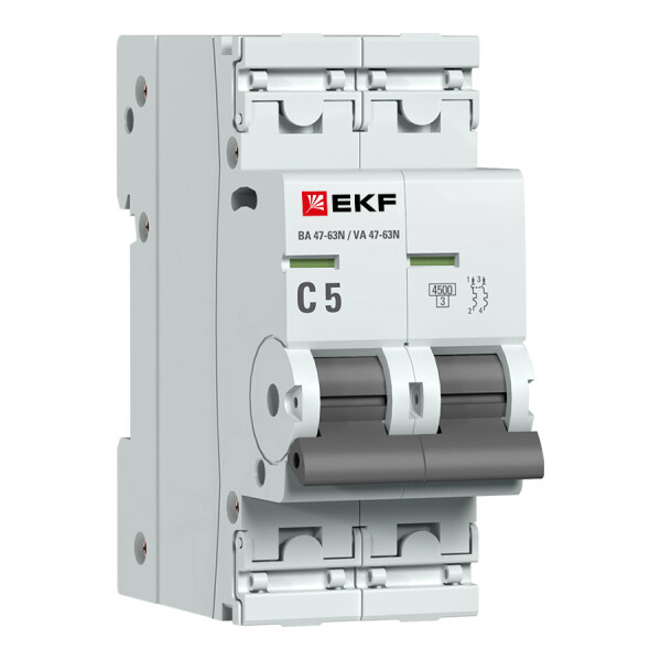 Автоматический выключатель ВА 47-63N 2P 5А (C) 4,5 кА PROXIMA EKF