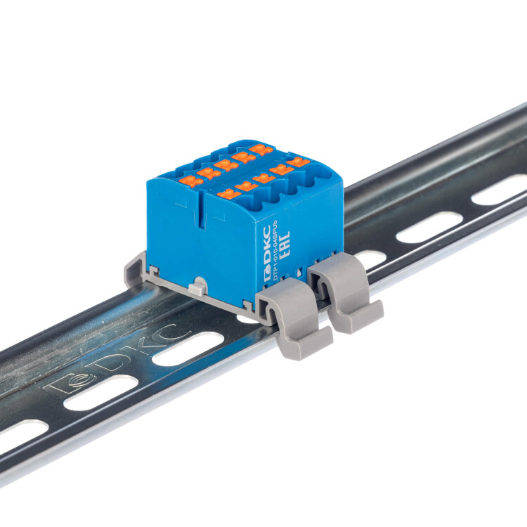 Блок распределительный с гориз. адаптером на рейку шириной 35мм, зажим push-in, 10 точек подключения 2,5 кв.мм, синий