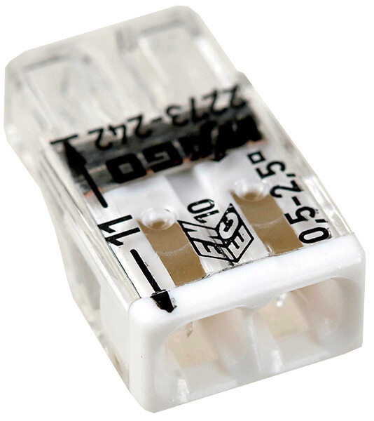 Клемма компактная, с пастой, 2х(0,5-2,5) мм?, прозрачная, белая