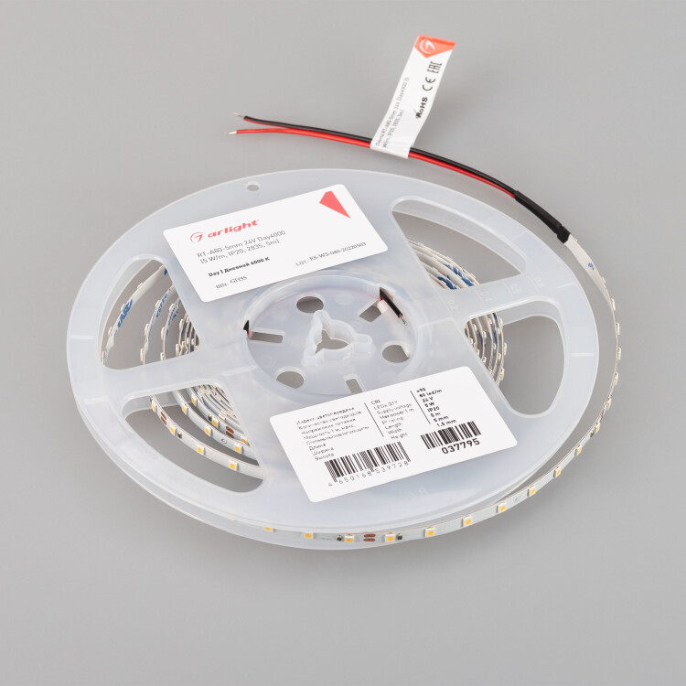 Светодиодная лента RT-A80-5mm 24V Day4000 (5 W/m, IP20, 2835, 5m)