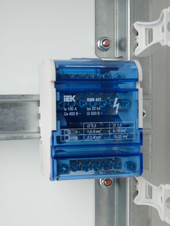 Кросс-модуль на DIN-рейку, 4 полюса, 100 А, 5х1,5-6 мм², 2х10-25 мм²