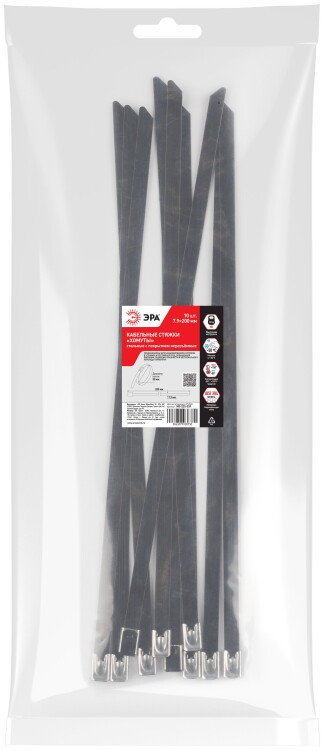 Кабельная стяжка (хомут) стальная AISI 304 с полимерным покрытием ЭРА NO-225-259 7.9 х 200 мм 10 шт