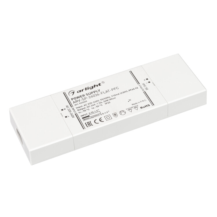 Блок питания ARV-SP-24036-FLAT-PFC (24V, 1.5A, 36W) (IP20 Пластик, 5 лет)