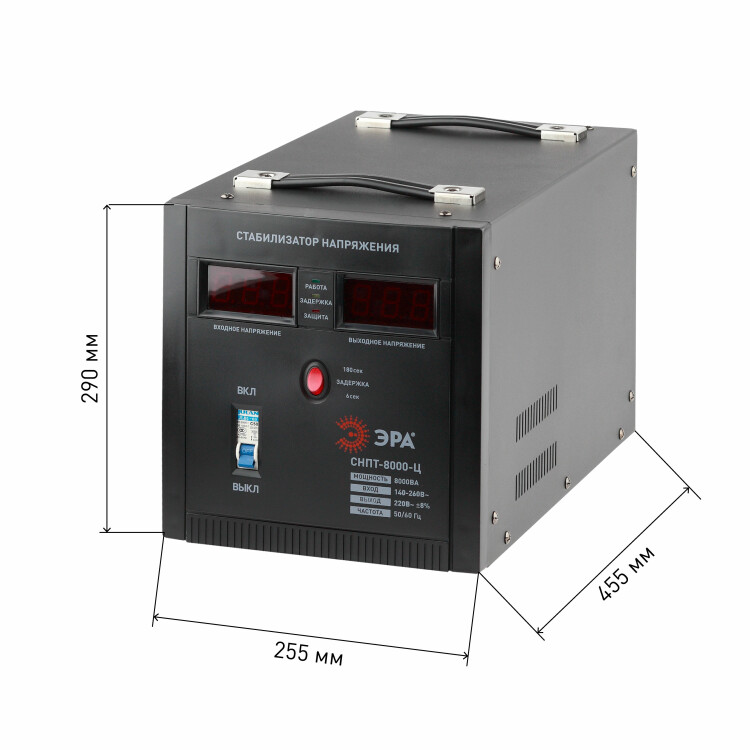 Стабилизатор напряжения однофазный, релейный, 8000ВА, Uвх=140-260В, точность +/- 8%, напольный, СНПТ-8000-Ц