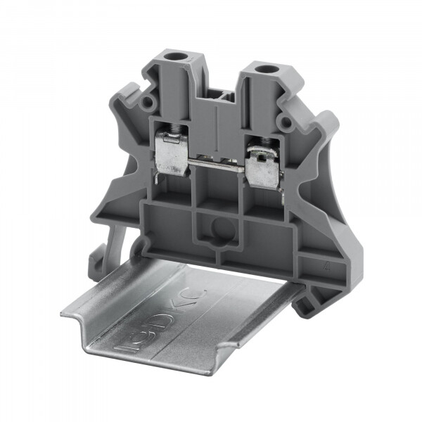 Клемма проходная, винтовой зажим, 2 точки подключения, 4 кв.мм, серая (аналог TUR-4)