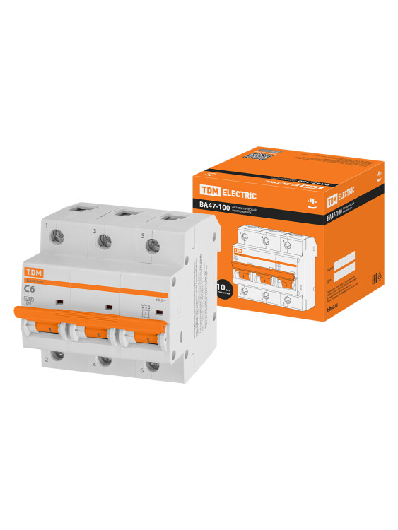 Авт. выкл. ВА47-100 3Р 6А 10кА х-ка С TDM