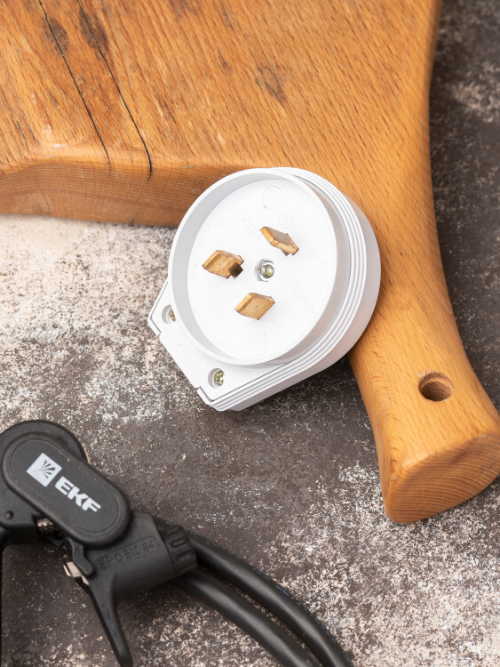 Вилка для разъема РШ-ВШ 32А 250В 2P+PE пластиковая бел. EKF