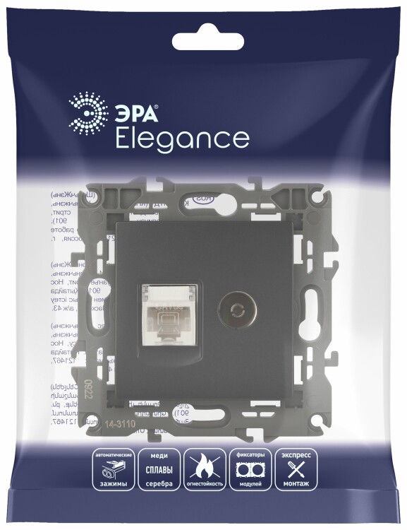 Розетка RJ45+TV, IP20, антрацит 14-3110-05