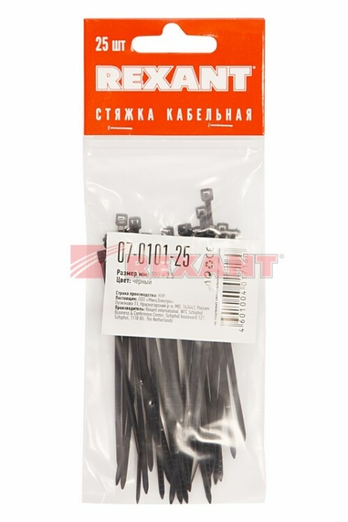 Стяжка кабельная нейлоновая 100x2,5мм, черная (25 шт/уп) REXANT