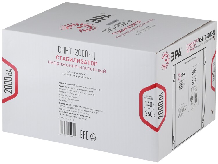 Стабилизатор напряжения однофазный, релейный, 2000ВА, Uвх=140-260В, точность +/- 8%, навесной, СННТ-2000-Ц