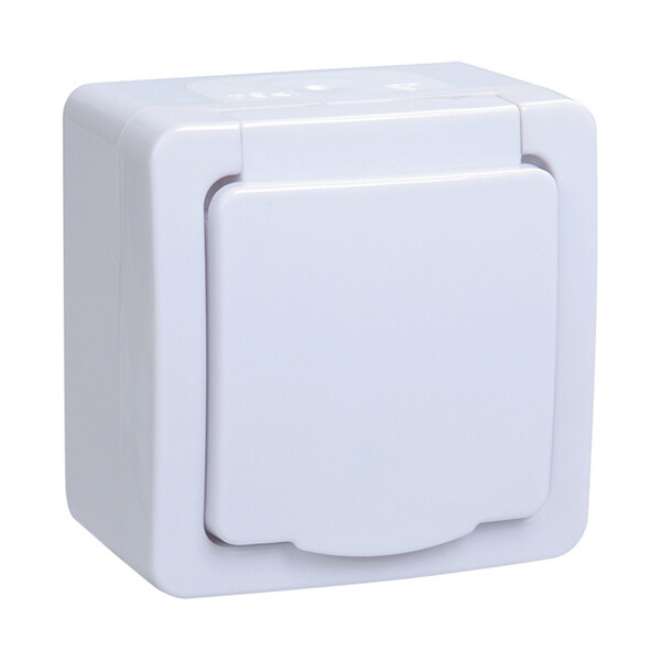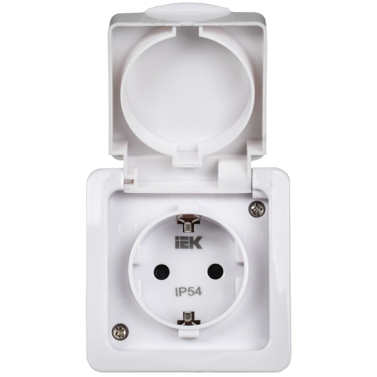 Розетка 2P+E с белой крышкой накладная белый IP54 IEK Гермес PLUS РСб20-3-ГПБб