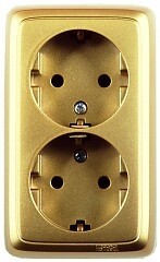 РА16-153-07 Розетка открытой установки, двухместная, с заземляющим контактом, с изолирующей пластиной, цвет золото
