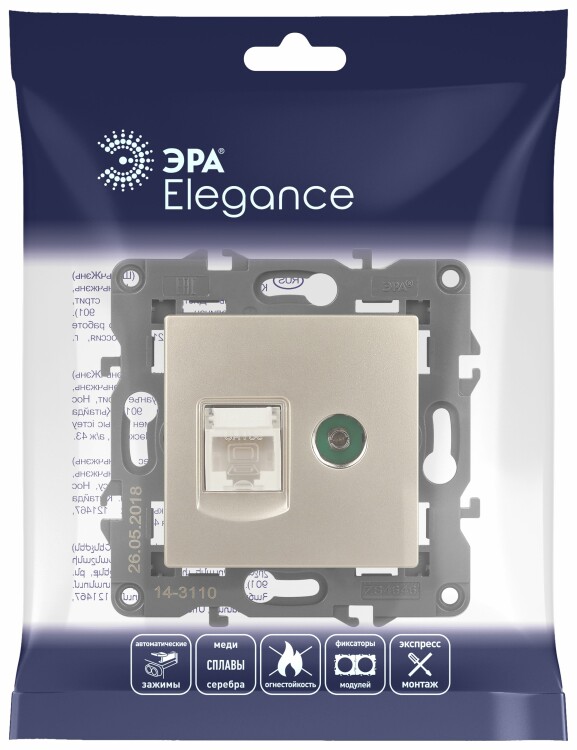 Розетка RJ45+TV, IP20, шампань 14-3110-04