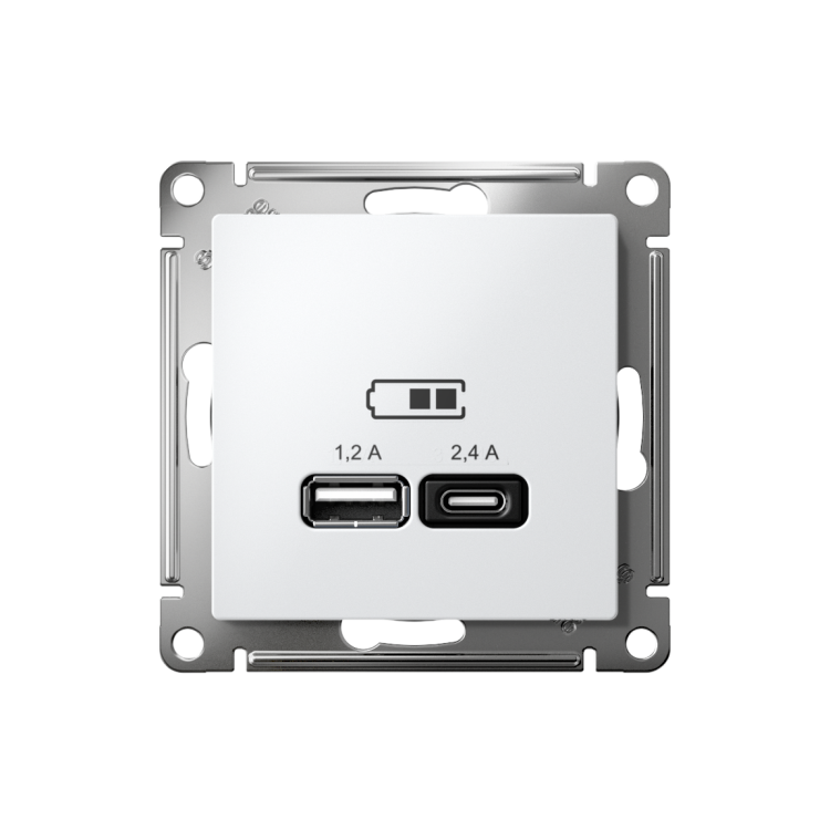 Розетка USB 2 порта A + C 5В/2,4А 2х5В/1,2А белый AtlasDesign