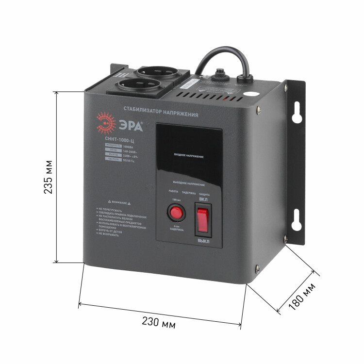 Стабилизатор напряжения однофазный, релейный, 1000ВА, Uвх=140-260В, точность +/- 8%, навесной, СННТ-1000-Ц