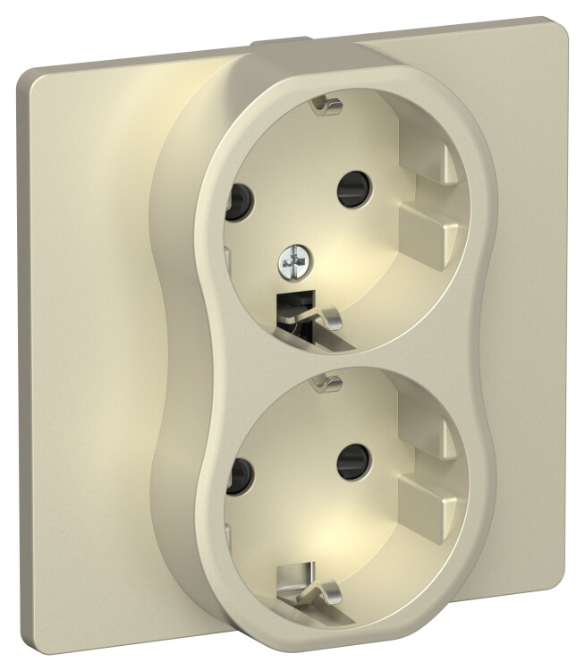 Розетка 2х2P+E со шторками в сборе Classic безвинтовое крепление 16А РСш12-1-К-ФлШ шампань FLITE