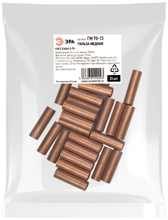 Гильза ЭРА ГМ 70-13 медная ГОСТ 23469.3-79
